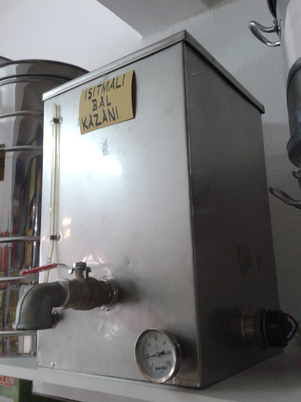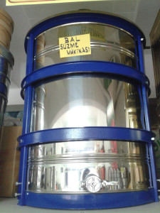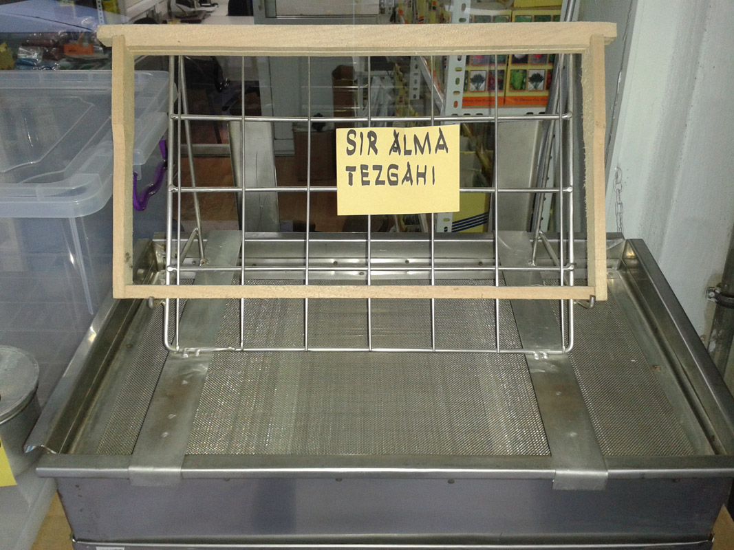 Paslanmaz galvaniz ve krom levhadan üretilen makine, aynı anda dört çerçeveden bal süzme işlemi yapabilmektedir. Ballı peteklerin ballarının petek gözleri bozulmadan alınması için kullanılır. Merkezkaç kuvveti ile çalışır. Çerçeve yuvaları, peteklerin kırılmaması için bombeli yapılmıştır. Mekanik (Resimde) ve elektrik motorlu olanları vardır.