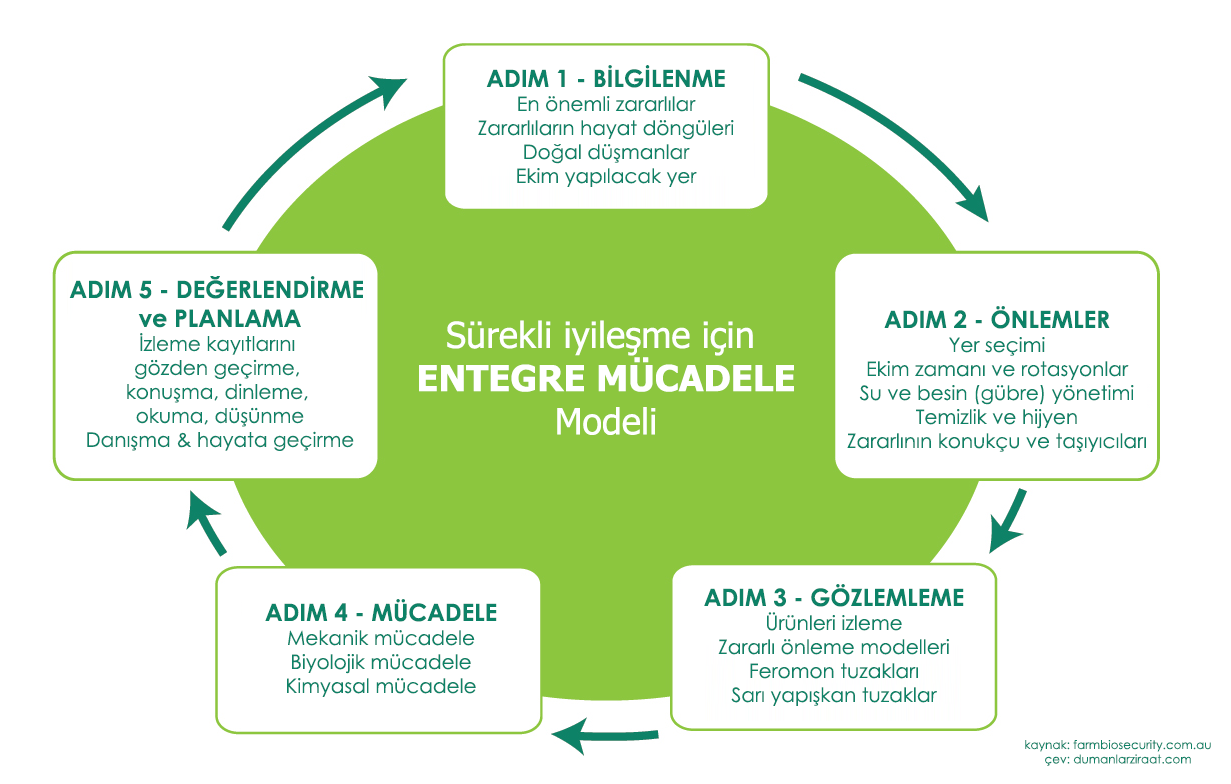 Gıda Tarım ve Hayvancılık Bakanlığı‘nca hazırlanan Entegre Mücadele Teknik Talimatları, bu yöntemler hakkında genel bilgiler vermekte ve Türkiye’de entegre mücadelesi yapılan 16 çeşit (örtüaltı üretim dahil) ürünü kapsamaktadır.